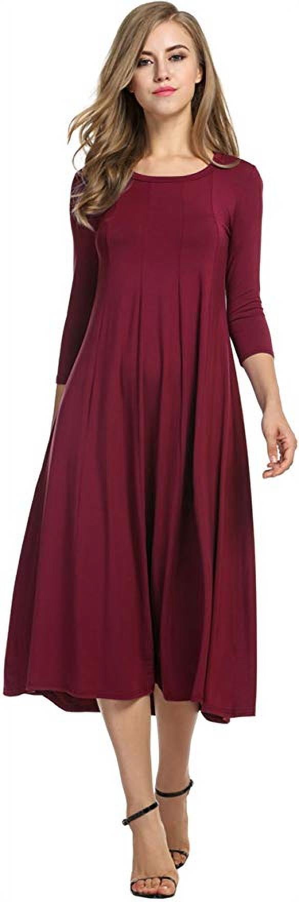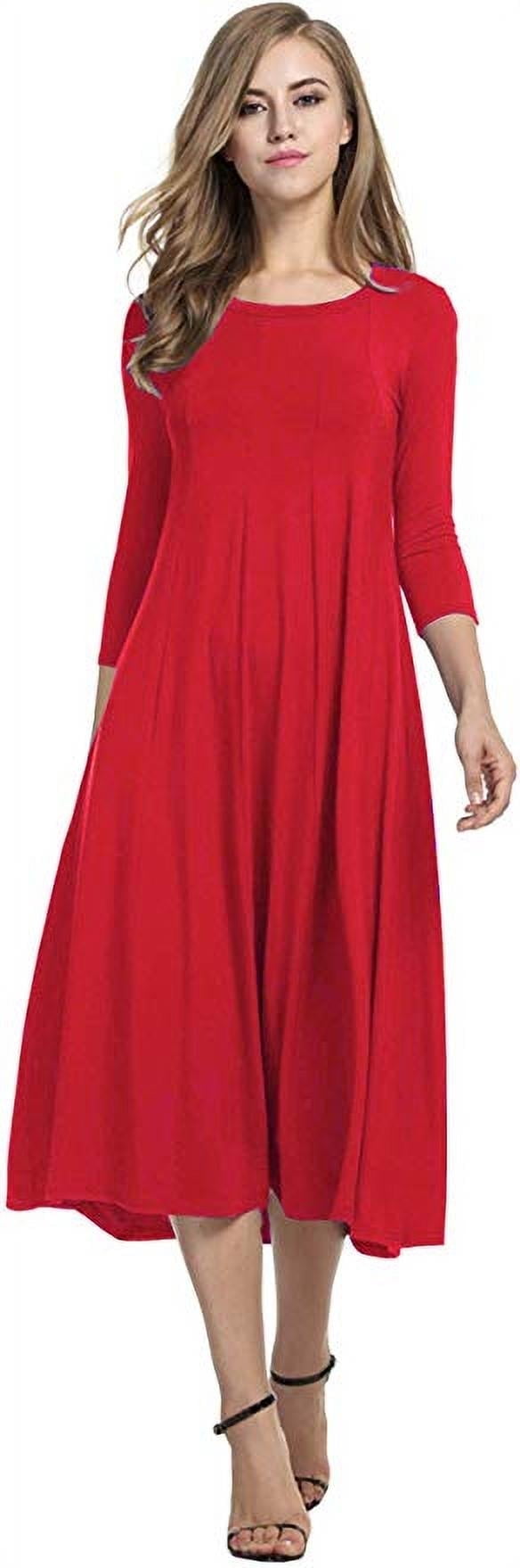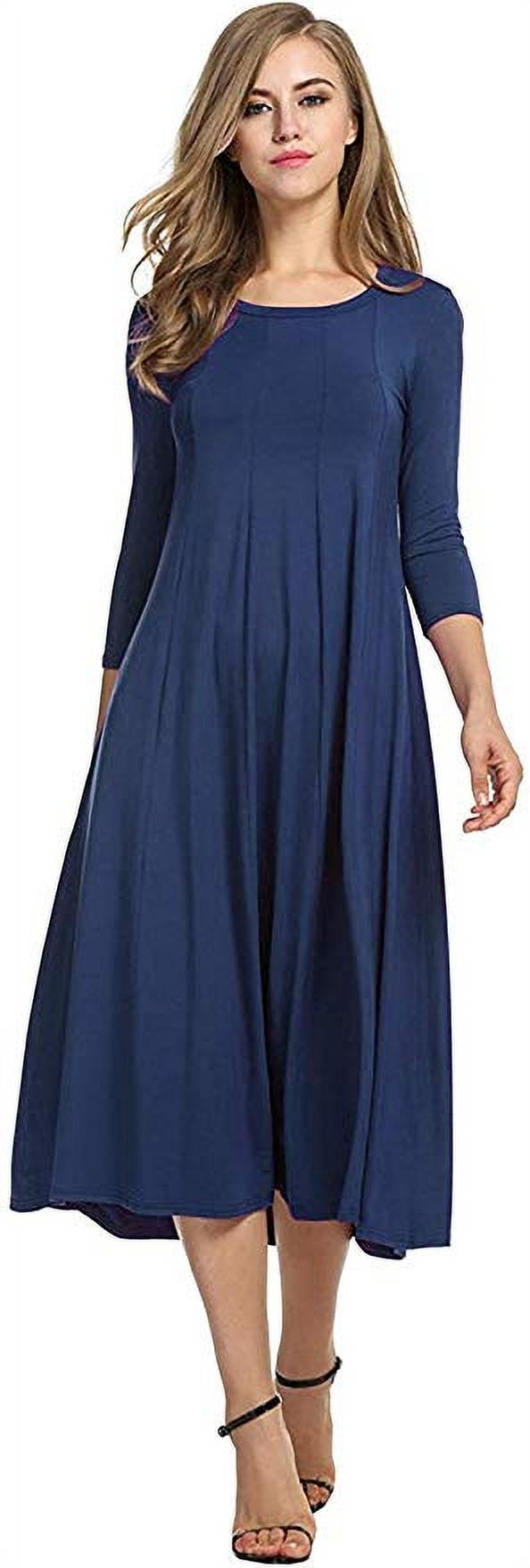 Women’s 3/4 Sleeve A-line and Flare Midi Long Dress