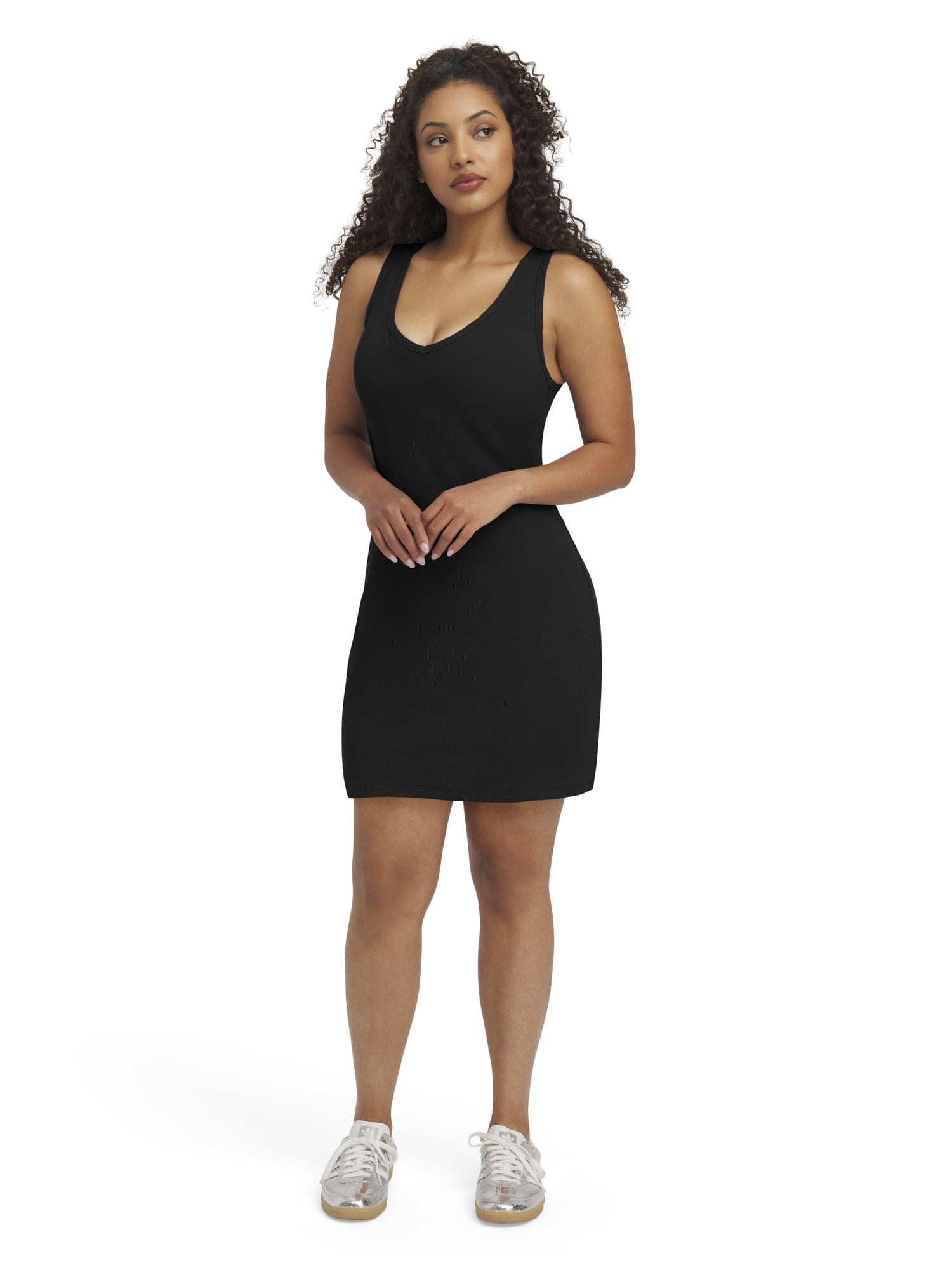- Sleeveless Ribbed Deep V-Neck Mini Dress
